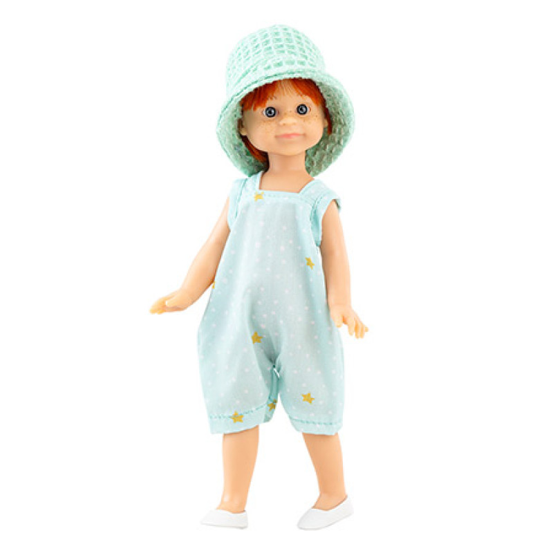 детализирована, лицо расписано вручную мастерами кукольной мануфактуры Paola Reina. Мальчик одет в летний комбинезон светло-голубого