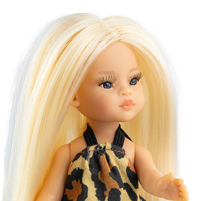 детализирована, лицо расписано вручную мастерами кукольной мануфактуры Paola Reina. Девочка одета в летнее платье яркой расцветки и